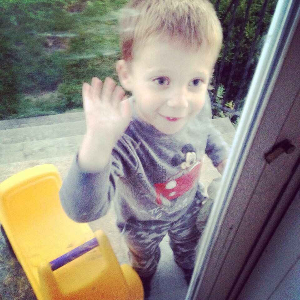 8:51: I take him around the house and he knocks on the front door. Kellie opens it and greets him with excitement. He runs inside, through the garage, onto the rocks, onto the grass and back to the front door. This would happen over and over. This was his moment as he discovered something new.